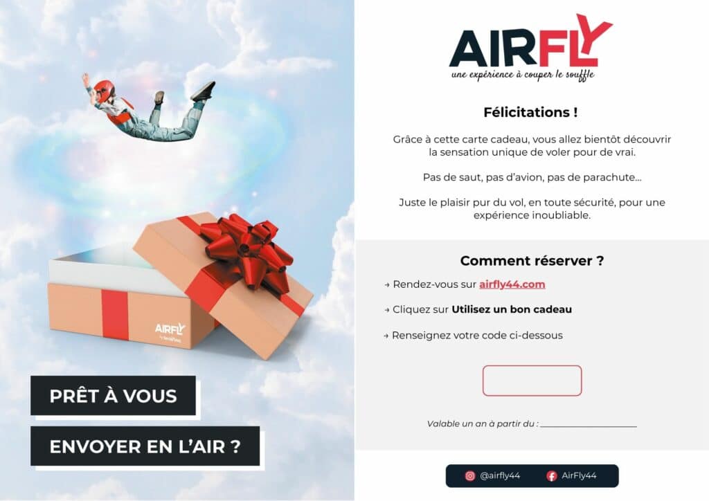 Vous pouvez acheter vos cartes cadeaux sur notre site de réservation airfly44.com